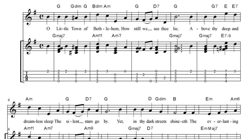 - O Little Town of Bethlehem (chord melody - lush chords, challenging chord changes with campanella passages)