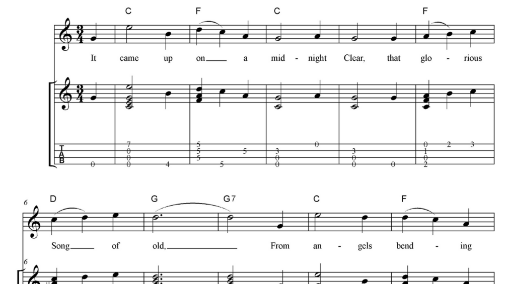 - It Came Upon a Midnight Clear (chord melody - lush chords, challenging fingering with campanella passages)